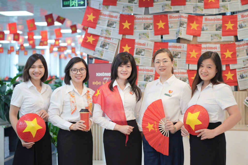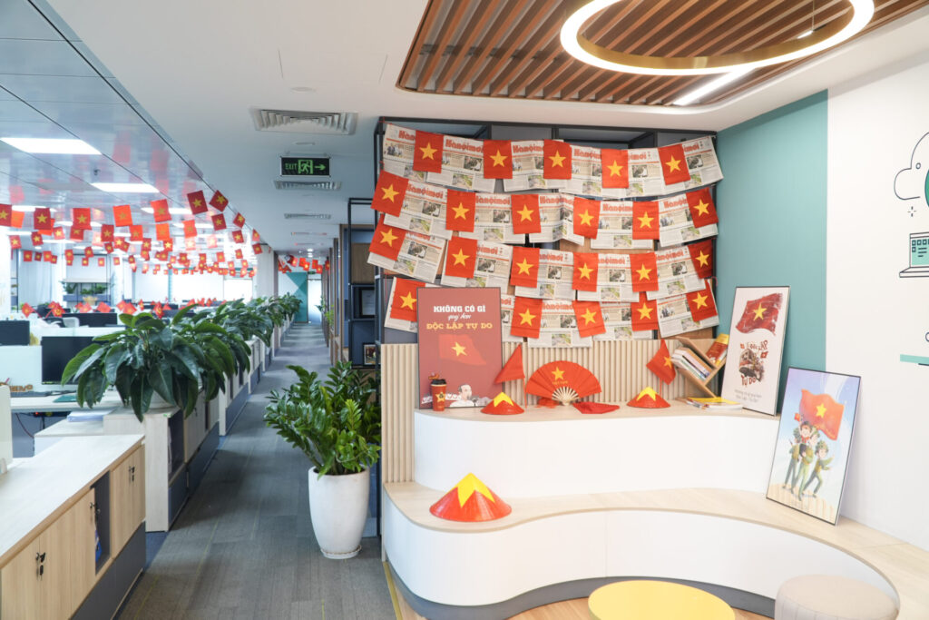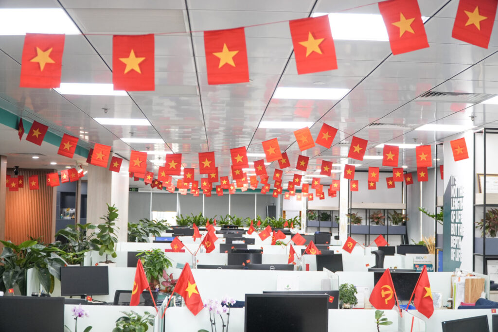 Không gian làm việc giờ đây trở nên sôi động và đầy hứng khởi hơn bao giờ hết. Những dải cờ nhỏ xinh xắn được treo dọc hành lang, những chiếc cờ “mini” đỏ thắm được gắn trên bàn làm việc, tất cả đã tạo nên một nguồn năng lượng tích cực, tiếp thêm động lực cho toàn thể cán bộ nhân viên Ban KHDN trong công việc và cuộc sống.